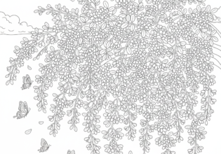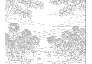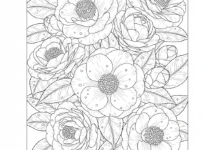 椿のクローズアップのぬりえ【無料ダウンロード】