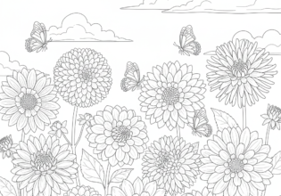 ダリアのクローズアップのぬりえ【無料ダウンロード】
