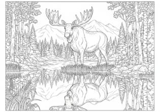 湖畔に立つムースのぬりえ【無料ダウンロード】