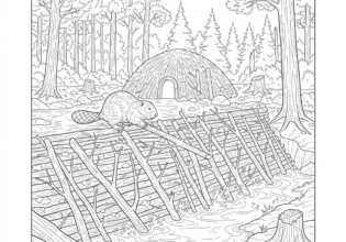 ダムを作るビーバーのぬりえ【無料ダウンロード】