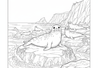 岩場で休むアザラシのぬりえ【無料ダウンロード】