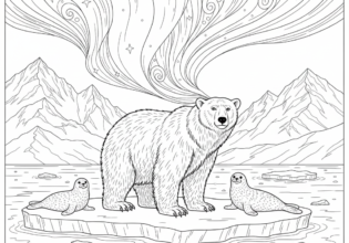 流氷の上のホッキョクグマのぬりえ【無料ダウンロード】