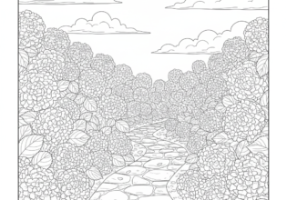 紫陽花の小道のぬりえ【無料ダウンロード】