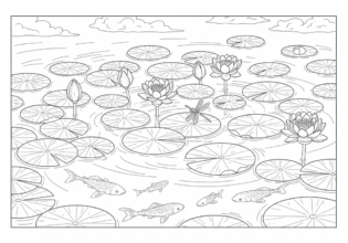睡蓮の池のぬりえ【無料ダウンロード】