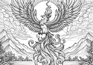 不死鳥フェニックスの塗り絵|炎と光に包まれた再生の象徴