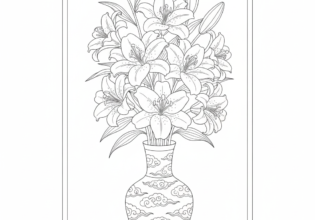 ユリと陶器のぬりえ【無料ダウンロード】