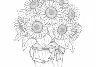 ひまわりとブリキバケツのぬりえ【無料ダウンロード】