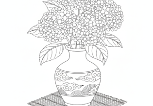 紫陽花と和風花瓶のぬりえ【無料ダウンロード】