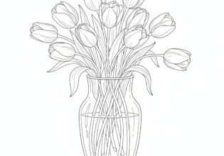 チューリップとガラス花瓶のぬりえ【無料ダウンロード】