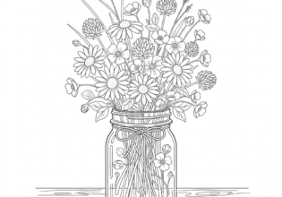 野の花とメイソンジャーのぬりえ【無料ダウンロード】