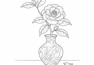 椿と備前焼のぬりえ【無料ダウンロード】