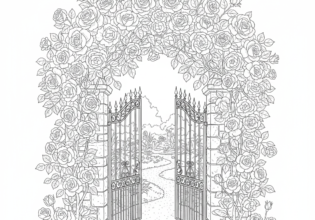 バラのアーチのぬりえ【無料ダウンロード】