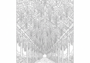 藤のトンネルのぬりえ【無料ダウンロード】