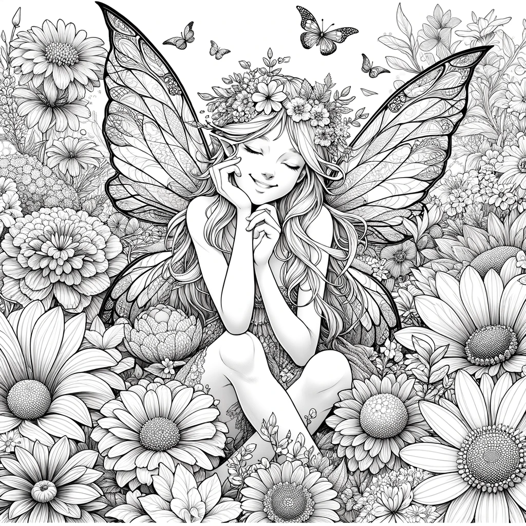 蝶の羽を持つ妖精、花と夢に包まれた至福のひととき