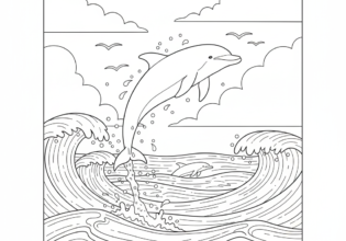 波間を跳ねるイルカのぬりえ【無料ダウンロード】