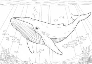 海中を泳ぐクジラのぬりえ【無料ダウンロード】