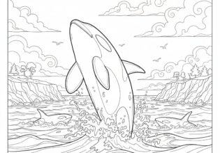 海面から顔を出すシャチのぬりえ【無料ダウンロード】