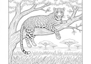 木の上で休むヒョウのぬりえ【無料ダウンロード】