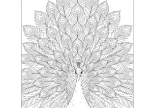 羽を広げたクジャクのぬりえ【無料ダウンロード】