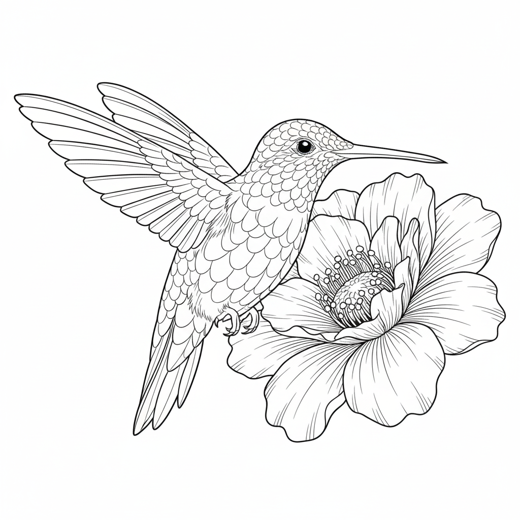 ハチドリの全身のぬりえ【無料ダウンロード】