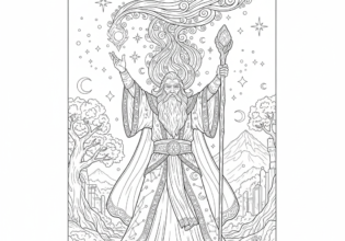 魔法の杖を掲げる魔法使い