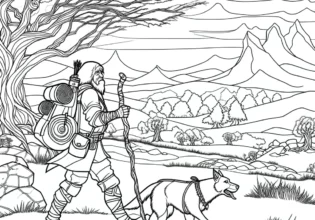 旅する冒険者と相棒の犬塗り絵|荒野を行く勇敢な旅人