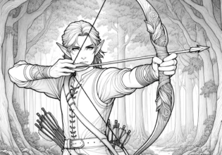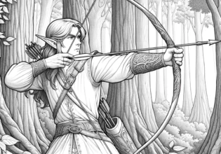 エルフの射手塗り絵|古の森で標的を見据える若きレンジャー
