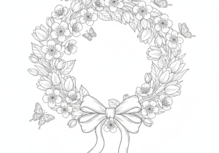春のリースのぬりえ【無料ダウンロード】