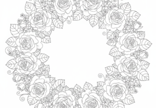 バラのリースのぬりえ【無料ダウンロード】