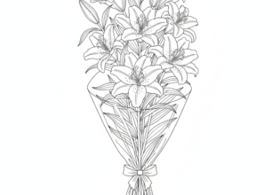 ユリのブーケのぬりえ【無料ダウンロード】