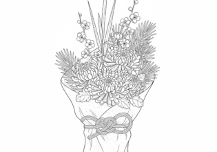 和風の花束のぬりえ【無料ダウンロード】