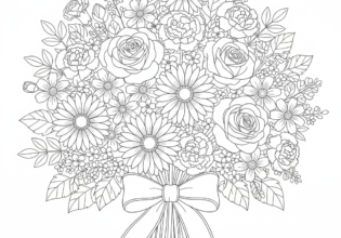 ミックスフラワーブーケのぬりえ【無料ダウンロード】
