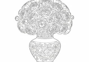 ラナンキュラスとアンティーク花瓶のぬりえ【無料ダウンロード】