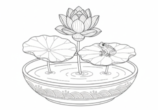 蓮と水盤のぬりえ【無料ダウンロード】