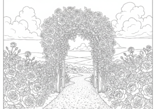 バラのアーチのぬりえ【無料ダウンロード】