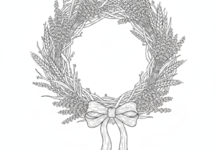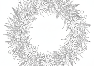 野の花リースのぬりえ【無料ダウンロード】