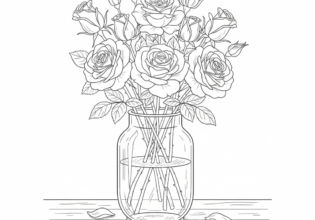 バラとガラス瓶のぬりえ【無料ダウンロード】
