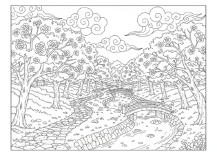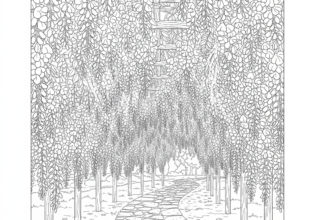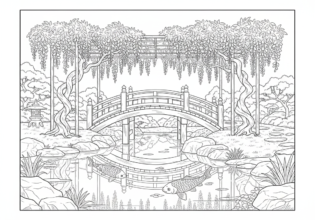 藤と太鼓橋のぬりえ【無料ダウンロード】