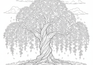 桜の大木を見上げてのぬりえ【無料ダウンロード】