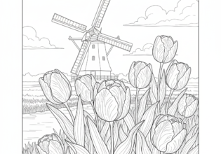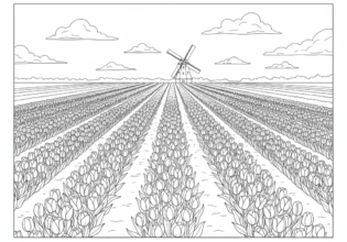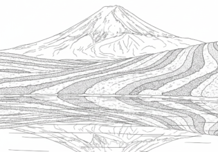 芝桜と富士山のぬりえ【無料ダウンロード】