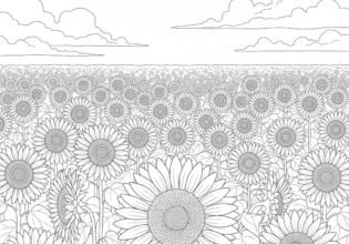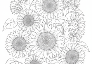 ひまわりのクローズアップのぬりえ【無料ダウンロード】
