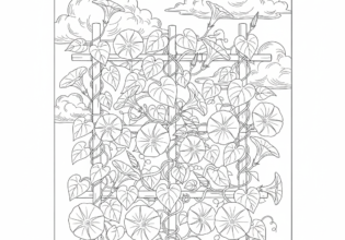 朝顔の垣根のぬりえ【無料ダウンロード】