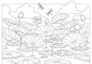 蓮のクローズアップのぬりえ【無料ダウンロード】