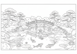石橋と錦鯉の池